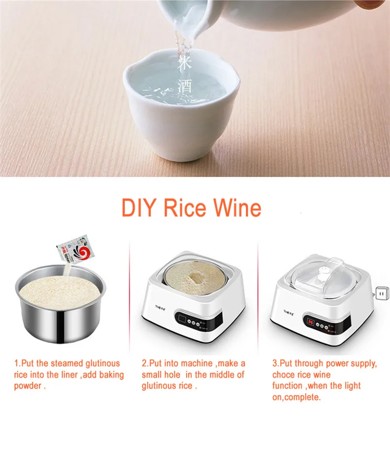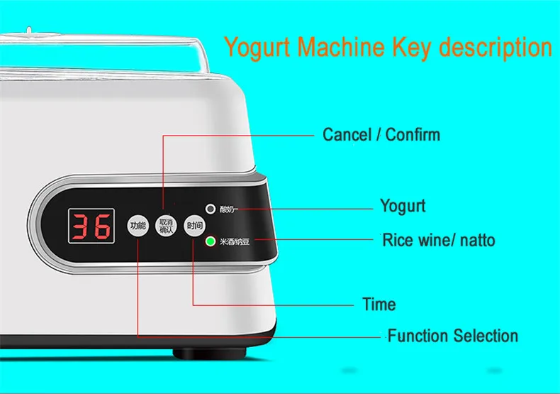 Мощность: 15 Вт Емкость: 1300 мл Вес нетто: 1,3 кг Размеры: 15,5 см * 22 см Функция: йогурт, рисовое вино, natto, молоко теплое Количество порошка для выпечки: 1000 мл молока добавьте 1 г порошка для выпечки.