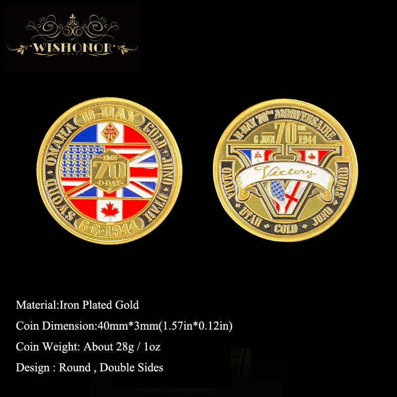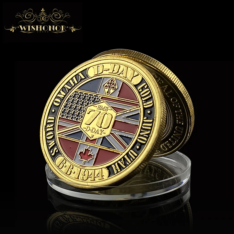 Название:1944 D-Day монеты позолоченные, 40*3 мм металлическая монета причудливая памятная монета с небольшой круглой коробкой