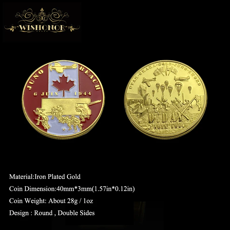 Название:Normandie War JUNO Beach памятная монета с покрытием из чистого золота военная медаль МОНЕТА 40*3 мм французская монета 2017 подарок