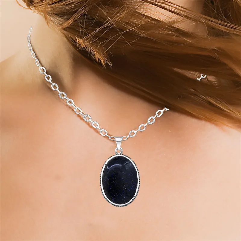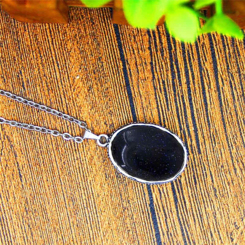 Материал: блестки синего камня, цепь из нержавеющей стали, подвеска из сплава цинка с античным серебристым покрытием.