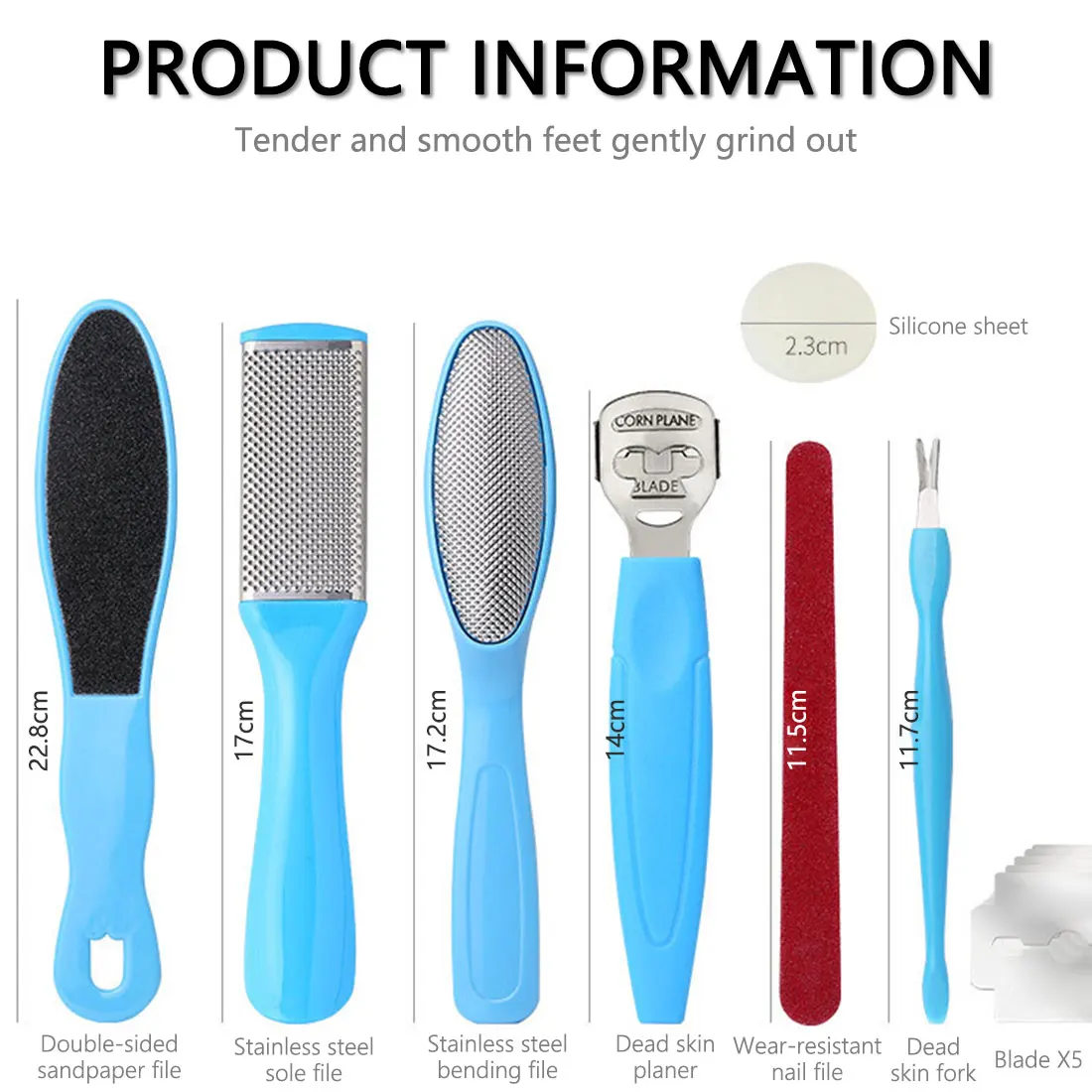 -Гладкие ступни: мягко удаляют омертвевшую и огрубевшую кожу, разглаживают ступни и полируют ногти, уменьшают жесткую и потрескавшуюся кожу, оставляют их гладкими, здоровыми и отдохнувшими. -Высококачественный и прочный материал: Изготовлен из высококачественной нержавеющей стали и пластика, легкий, прочный и удобный в использовании. -Сэкономьте свое время и деньги: с этим педикюрным набором нет необходимости в салоне красоты, экономии времени и денег! Вы можете использовать их для себя или своей семьи, подойдут для всех.