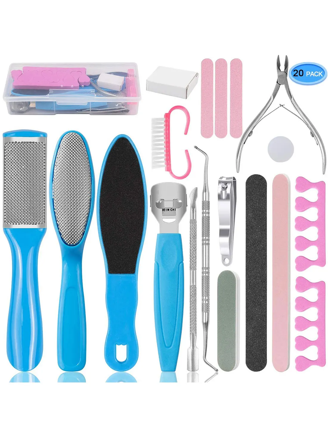 1. Набор многофункциональных инструментов для педикюра: средства для ухода за ногами предназначены для эффективного удаления кукурузы, омертвевшей кожи, упрямых мозолей и толстых ногтей безопасно и безболезненно, очистки омертвевшей или огрубевшей кожи. Оставляя с малышом-мягкие и Гладкие ножки и заставляют наслаждаться удовольствием от ухода за ногами. Подходит как для профессионального ногтевого, так и для домашнего педикюра. 2. Высококачественный, прочный и надежный материал: наш профессиональный набор для педикюра изготовлен из высококачественной нержавеющей стали и АБС-пластика, долговечен и прочен, что обеспечит Вам комфортное и продолжительное использование. Педикюрные инструменты для ухода за ногами изготовлены из качественной нержавеющей стали, обеспечивают долговечность и долговечность, хорошее качество изготовления гарантирует гладкость краев и хорошую текстуру, хороший подарок для ваших родных и близких. Регулярно ухаживайте за ногами, уменьшайте твердую и потрескавшуюся кожу и делайте кожу гладкой 3. Набор для ухода за ногами 20 в 1: Набор для маникюра и педикюра содержит 20 инструментов, включая Рашпиль для ног, толкатель для кутикулы, щипчики для ног, скребок, удаление мозолей, удаление кутикулы, пилочка для ног, пилочка для ногтей, ногтей, Ножницы для ногтей и 3 лезвия и т. д. поставляются с 20 инструментами для педикюра, можно использовать различные инструменты для достижения наилучшего эффекта в соответствии с состоянием стопы. Он может удовлетворить ваши различные потребности 4. Портативный и удобный: с пластиковой коробкой для удобного хранения и использования этих педикюрных наборов. Идеальный размер и светильник вес, вы можете брать его куда угодно, отлично подходит для путешествий и повседневной жизни. Хорошее качество изготовления гарантирует Гладкий край и хорошая текстура, хороший подарок для ваших родных и близких. Разгладьте ступни и отполируйте ногти. 5. Подходит как для профессионального ногтей, так и для домашнего педикюра, подходит для удаления мозолей, кукурузы, жесткой кожи, кожуры ног, кутикулы и т. д. Аккуратно удалите кукурузу на ногах, снимите омертвевшую или Разгладьте огрубевшую кожу с ног и полируйте ногти. 6. Эргономичный светильник дизайн: небольшой светильник дизайн, удобный, простой в использовании, его также можно использовать для использования в помещении и на улице.