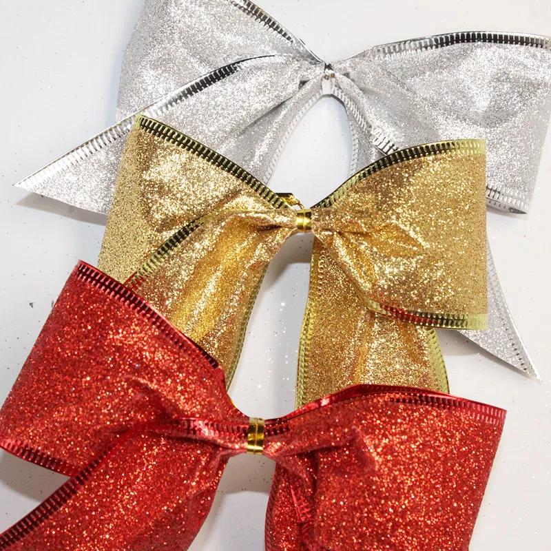 Большой красный, серебристый, золотой Рождественский бант из ленты, Рождественская елка, украшение ручной работы, арворные гранды, Рождественское украшение