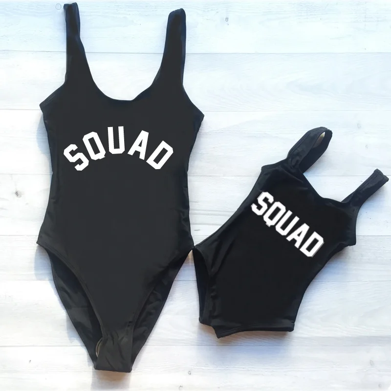 Детский купальный костюм для девочек; Цельный купальник с принтом в виде единорога и букв; Купальный костюм; Милый комплект для мамы и ребенка; Семейная одежда; Одинаковые детские купальники