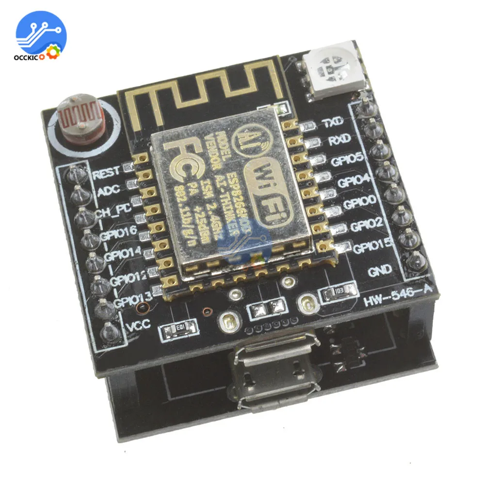 Он имеет LDR и светодиодный WS2812 уже на борту для ваших проектов. Плата поставляется с микро-usb модулем CH40 для его программирования.