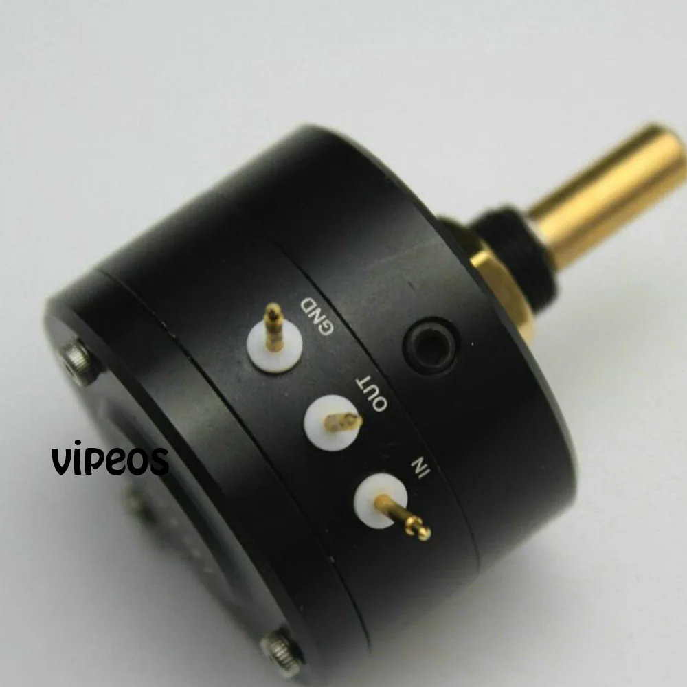EIZZ Mono Audio Attenuator MONO 24-Steps serial type Value: 100K Machined Aluminum Shield/cover, black anodized, sand blasting BH 1/4W Carbon film resistors Total 65db Machanical lifer: more tham 20000 cycles Overall length: 52mm Panel cut out diameter: 10mm Shaft length: 15mm Shaft diameter: 6mm Gold plated copper pins Teflon insulator The price is for 1PC/lot