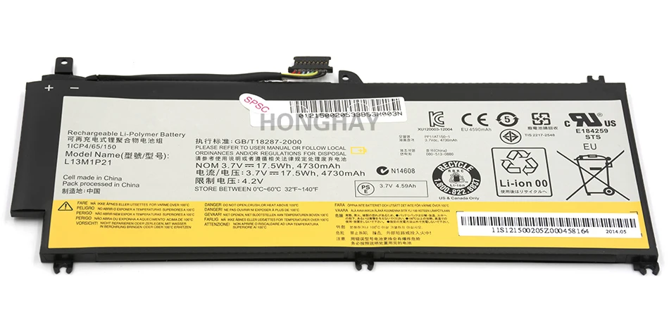 HongHayНомер модели:L13M1P21Тип батареи:Литий-полимерный аккумуляторНапряжение батареи:3,7 VЕмкость аккумулятора:17.5Wh 4730 мАчЦвет: