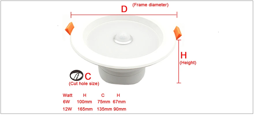 Тип товара: светодиодный светильник с инфракрасным датчикомОсновной материал: ABC + Драйвер инфракрасного датчика + Epistar светодиодный + электронный компонентЦвет корпуса: белыйНоминальная мощность: 6 Вт/12 ВтРазмер: d100мм * h67мм/d165мм * h90ммРазмер отверстия: 75 мм/135 ммЛюмен: 540lm/1080lmВходное напряжение: 110-240 ВСветильник Цвет: холодный белый 6400KРасстояние срабатывания: >5 мЗадержка срабатывания: 12-15 сКоэффициент мощности:> 0,5IP:20Ра:>75Ta:-20-65 градусовУсловия работы:1. Темная среда2. Люди проходят зону зондирования.Применение: навес, проход, коридор, лестница, балкон и т. Д.