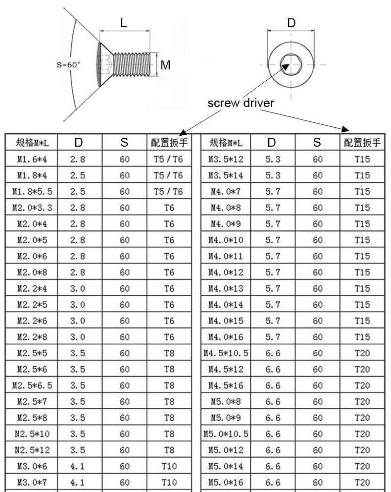 Размер:M2 M2.5 M3 M3.5 M4 M5