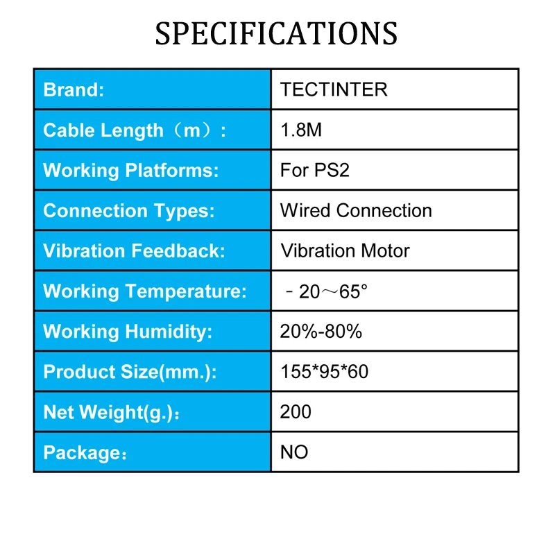 Этот элемент является проводным контроллером для Sony PlayStation 2, превосходное автоматическое подключение. Использование высокопроизводительных чипов, геймпад в игре имеет лучшую стабильность, высокоточные рокеры 360 °, задержка почти равна нулю. С дизайном кривой человеческого тела, вы не будете чувствовать усталость, даже если вы зависимы от игры в течение длительного времени! Он также поддерживает PS3/PC win7/8/10