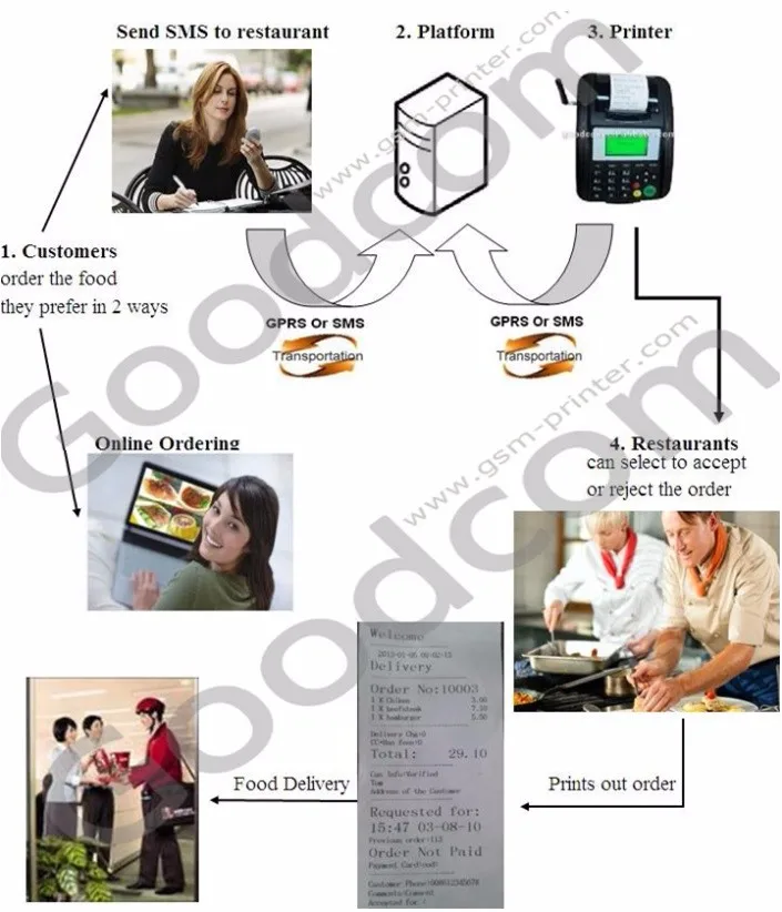 GPRS SMS принтер GT5000S может быть использован для принятия/отклонения orderrs.