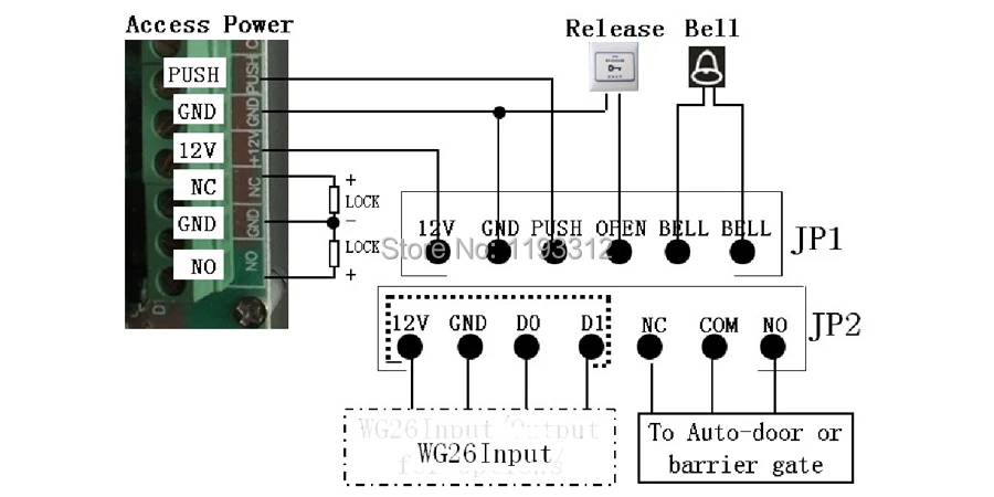 Автономная работа Функция защиты данных от отключения питания Можно подключить slave reader/wiegand 26 вход Подключите к дверному звонку по проводу или беспроводной связи в соответствии с требованиями заказчика и поддерживайте переключатель для открытия двериНет