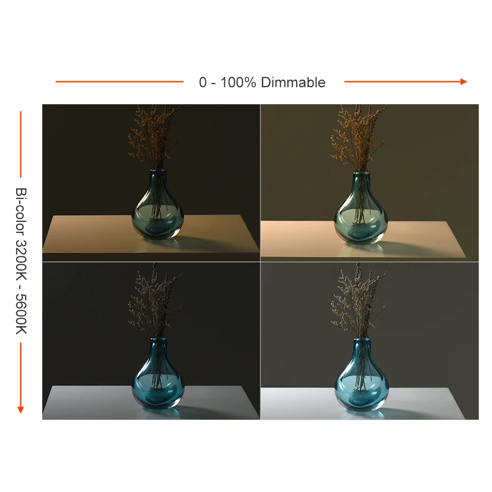 Двухцветный 3200K - 5600K, Яркость затемнения, легко получить правильное освещение.