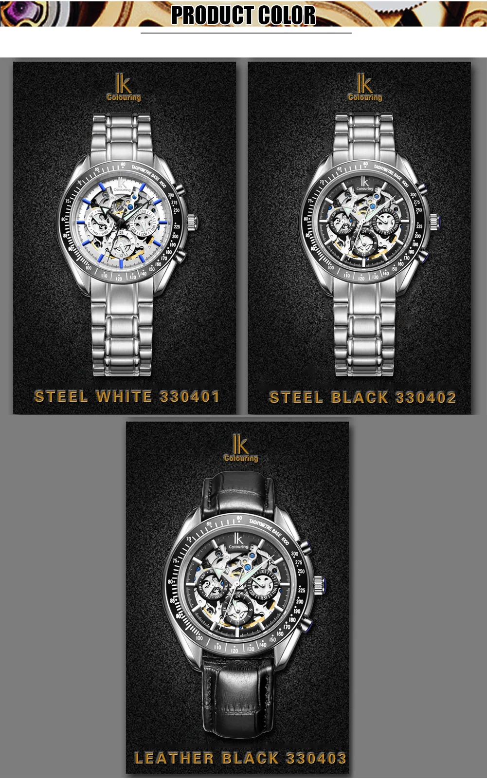 Торговая марка: IK Модель: 3304 Характеристики: натуральная кожа/нержавеющая сталь, импортное автоматическое механическое движение, многофункциональный три циферблата, отображение календаря/недели, прибитые весы, двусторонняя полые, Hardlex, 50mwaterproof, светящаяся указка. Механизм: самоветряющийся автоматический Материал корпуса: нержавеющая сталь Материал ремешка: натуральная кожа/нержавеющая сталь Застежка: Пряжка/складная застежка с безопасности Функция: 5TM из водонепроницаемого материала Стекло: Hardlex Окружность часов: кожа 260 мм, сталь 250 мм Ширина ремешка: кожа 20 мм, сталь 18,8 мм Толщина циферблата: 14,3 мм Диаметр циферблата: 40 мм Вес нетто: кожа 80 г, сталь 160 г