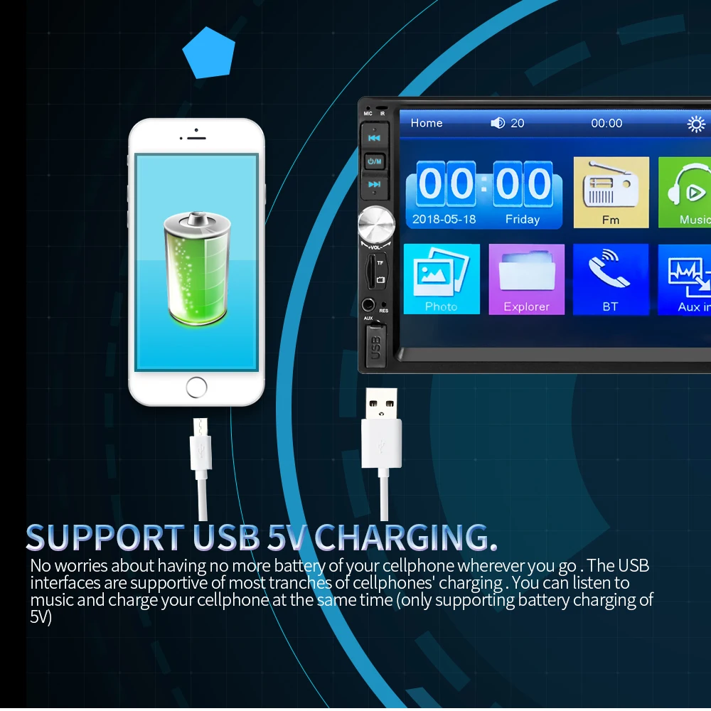 This car radio with MP5 player supports USB TF card. And the sound of its music is better than CD/DVD Player.