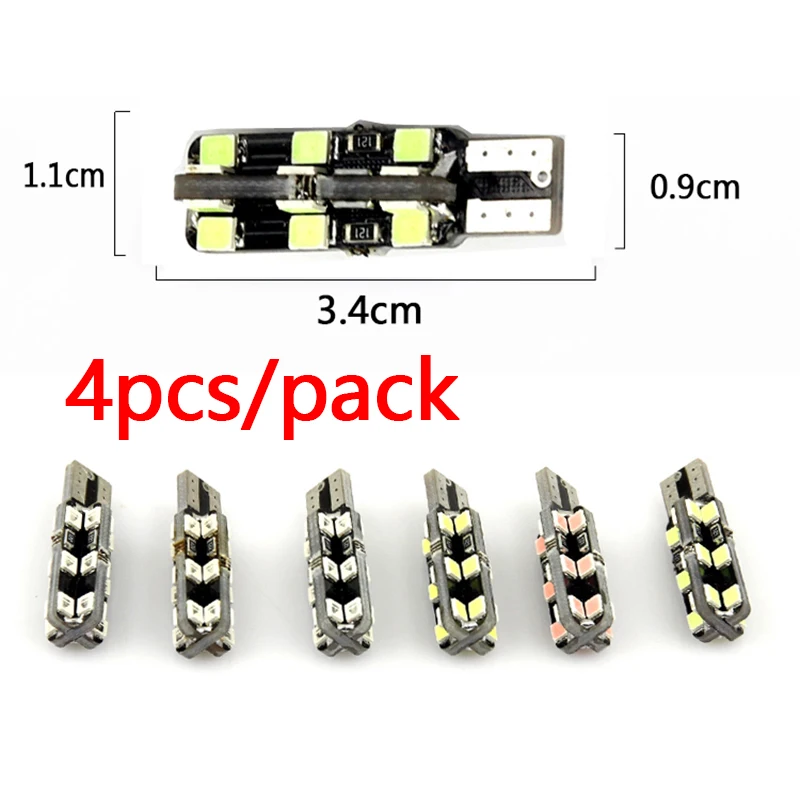 Модель лампы: T10Напряжение: 12 В постоянного токаВатт: 5 ВтКоличество светодиодов: 24 светодиодных чипаЦвет света: белый/кристально-синий/фиолетовый/красныйУпаковка: 4 светодиодных индикатора pscs T10