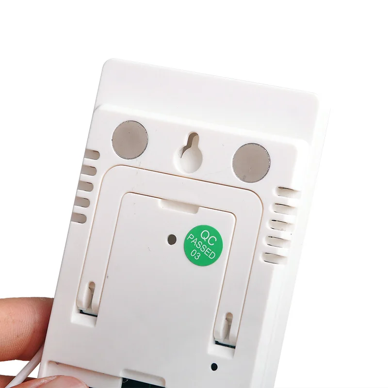 Цифровой термометр используется для измерения температуры и влажности в помещении/на улице. Его можно разместить на столе или повесить на стену. С большим ЖК-дисплеем, вы можете легко прочитать значение.