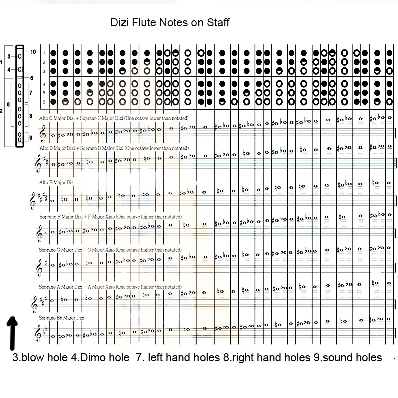 DE F G ключ Dizi флейта Примечания относительно персонала