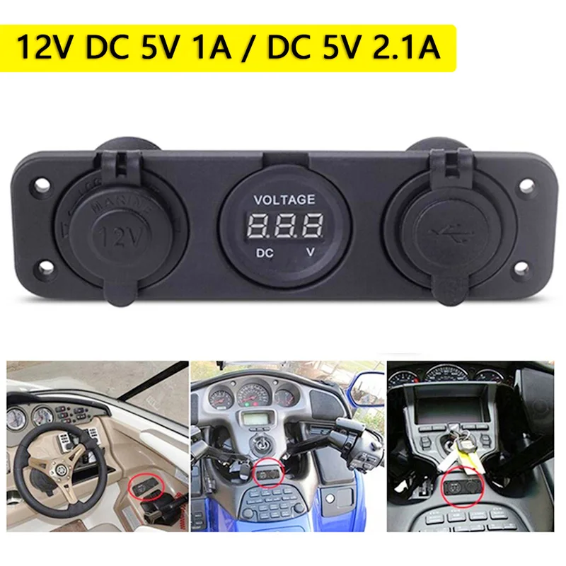 1. С вольтметром, адаптером прикуривателя, 2 usb-разъема