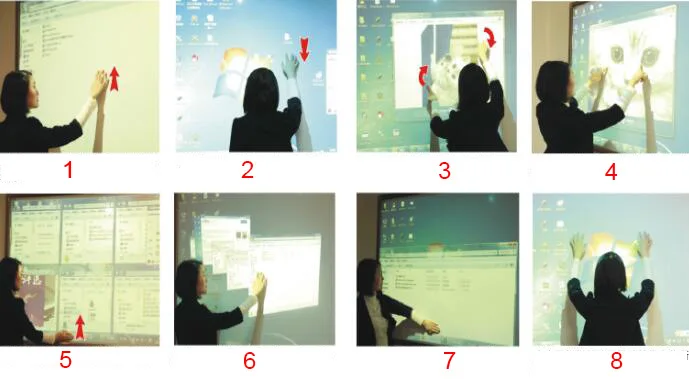 2. пять пальцев открывают ползунок вниз, означает минимизировать окно.