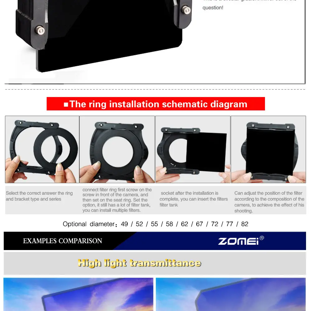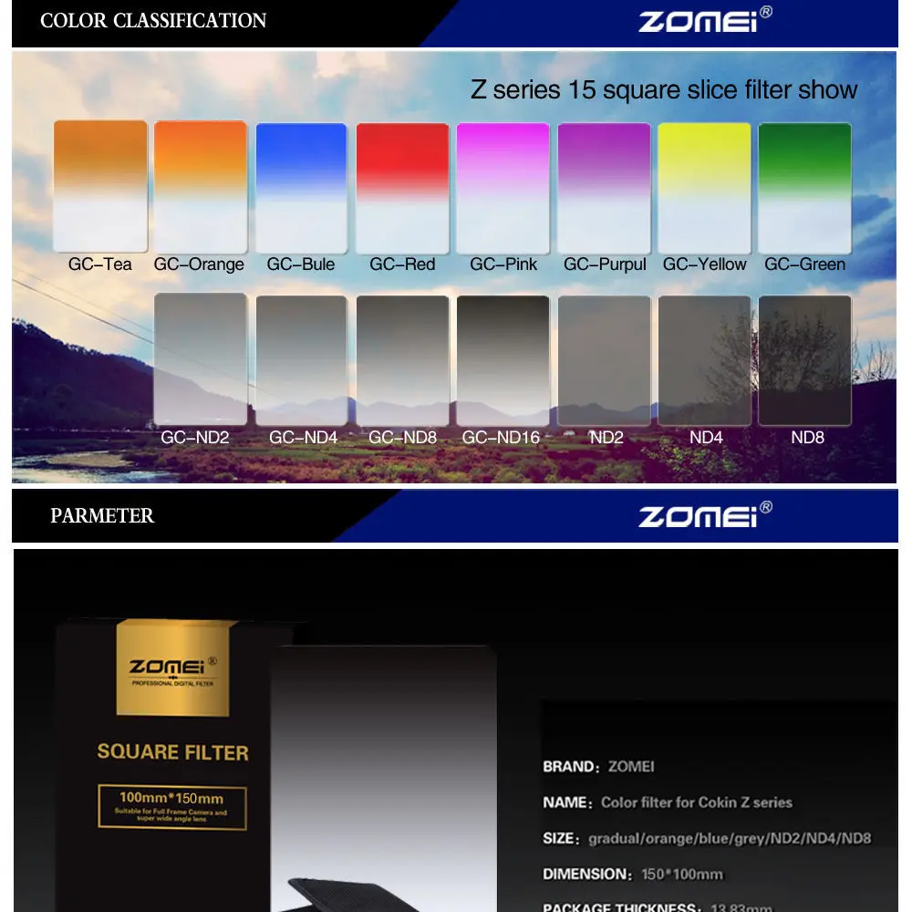Zomei Original 150*100mm Square Graduated Color Neutral Density Filter Full Color Grey ND2 ND4 ND8 Filter for Cokin Z-Pro