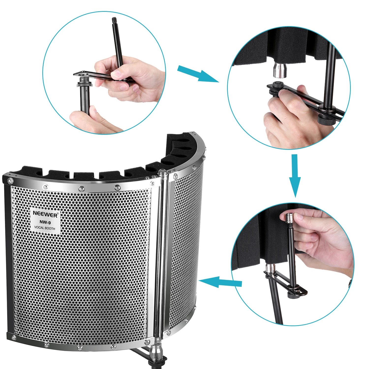 Neewer складной микрофон Акустическая изоляция щит с легким металлическим сплавом, акустические пены, монтажные кронштейны и винты