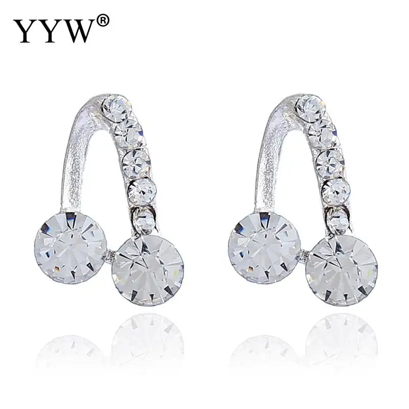 Серьги-гвоздики из цинкового сплава, оптовая продажа, булавка из нержавеющей стали, посеребренное покрытие, для женщин и со стразами, не содержит свинца и кадмия, 15x10 мм, продается парой