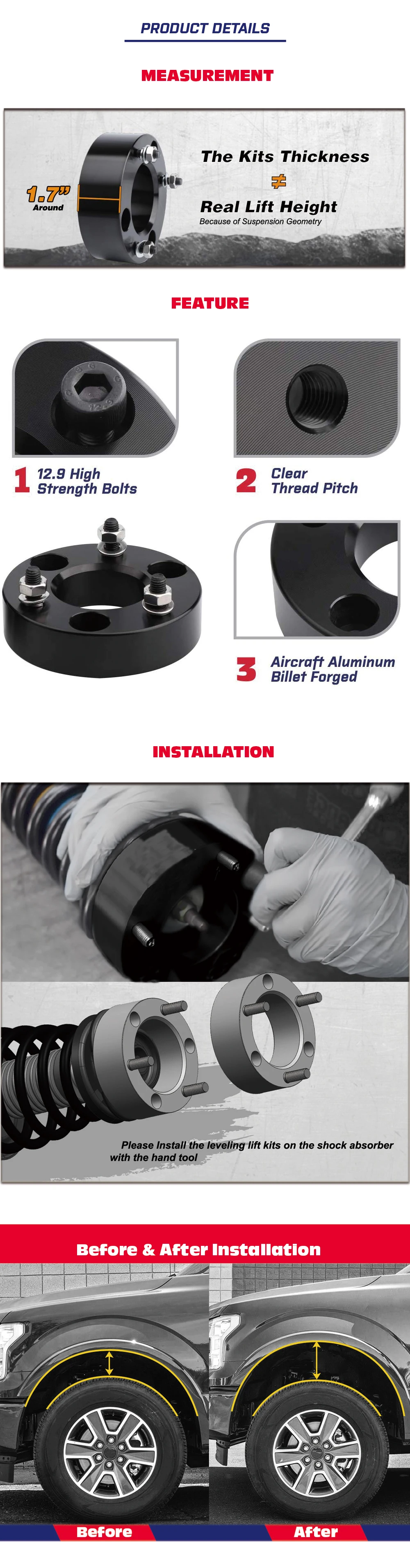 Высота подъема: 3 "передняя подъемная Проставка Толщина: около 2" Применимость: Dodge Болты: болты 12,9 класса премиум Обработка поверхности: анодированная Материал: Кованая авиационная Заготовка алюминий Т6 обработанный Простая установка: 1-2 часа без использования специальных инструментов Количество: 2 шт. в комплекте с инструкцией по установке Цвет: черный Гарантия: 1 год