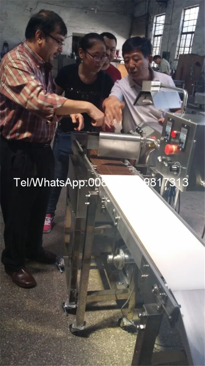 Машина используется для производства всех видов специального шоколадного оборудования. Может быть разнообразным шоколадным шоколадом с покрытием на различных видах поверхности пищи. Шоколадные продукты, такие как конфеты, шоколад и шоколад, имеют много различных вкусов
