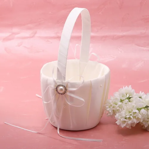 25 см белая свадебная Цветочная корзина атласные лепестки Свадебная церемония