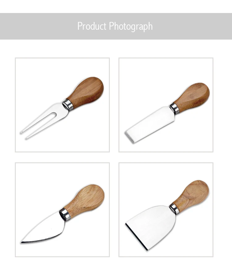 4 шт. Набор ножей для сыра стальные ножи из нержавеющей стали с деревянной ручкой.