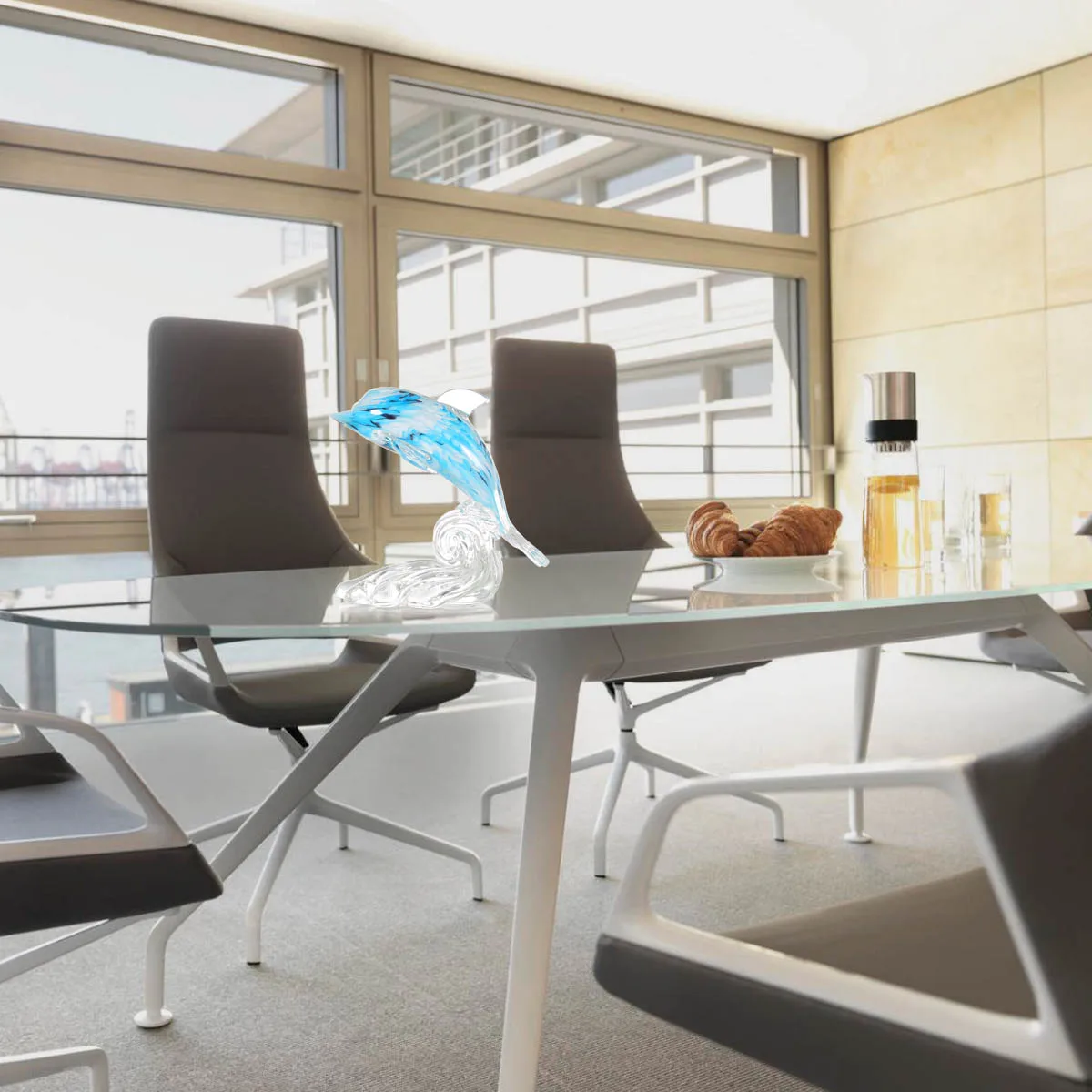 Скульптура деликатно сделана профессиональным мастером. Каждое ремесло испытало более 1000 высокотемпературных процессов выпечки, моделирования и окраски. Он имеет лаконичный и модный стиль, различные и красивые цвета, деликатные и реалистичные детали и изысканный внешний вид, бросает глаза на первый взгляд. Особенно синяя текстура внутри тела дельфина воплощает превосходные навыки мастера.