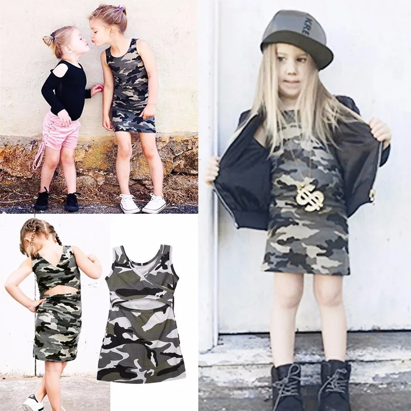 2017 г. Летнее платье для маленьких девочек от 1 до 6 лет повседневные камуфляжные платья с вырезом на спине для маленьких девочек вечерние Сарафаны