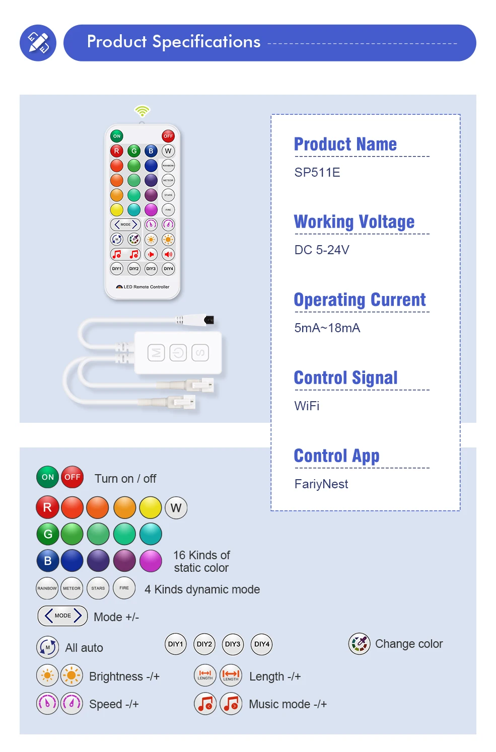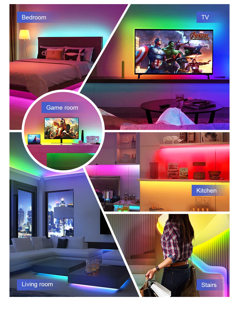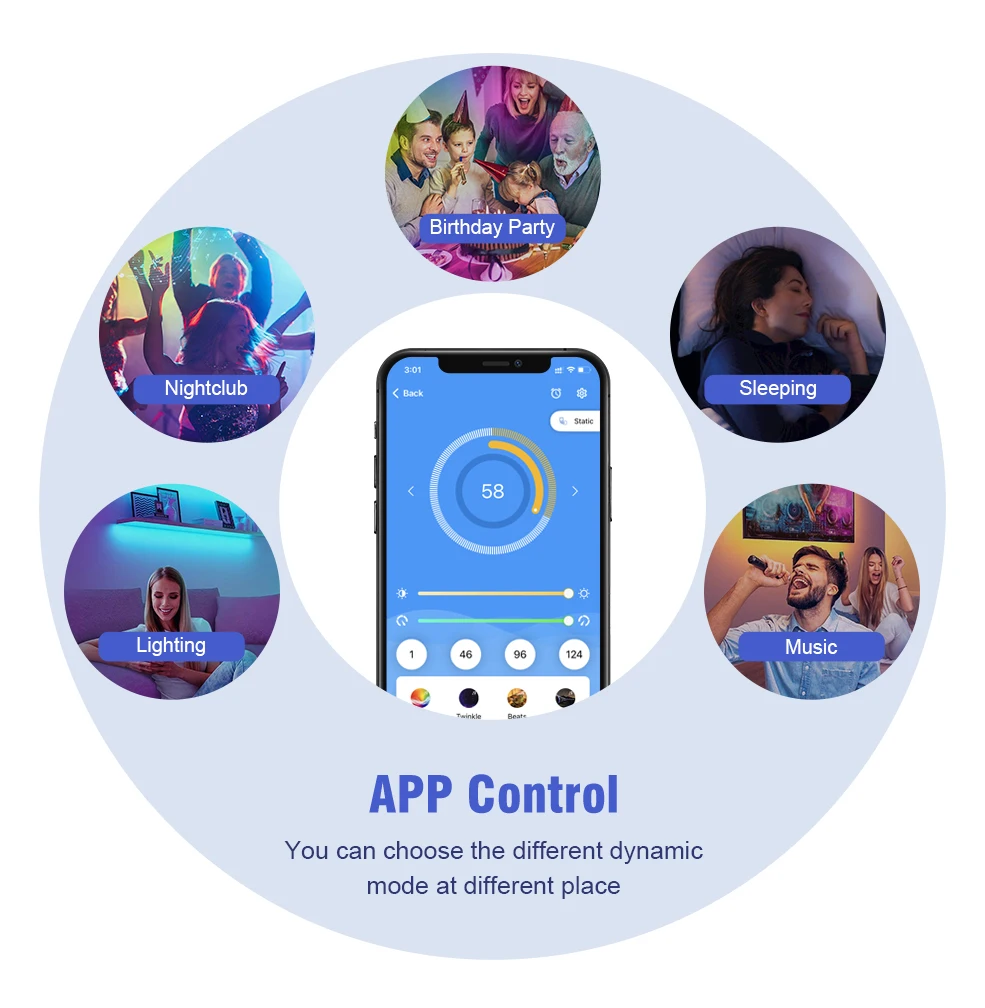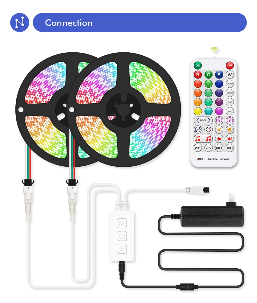 * Удаленное управление, вы можете управлять светодиодный полоской, когда и где угодно через приложение в 2G/3G/4G/WIFI сети.
