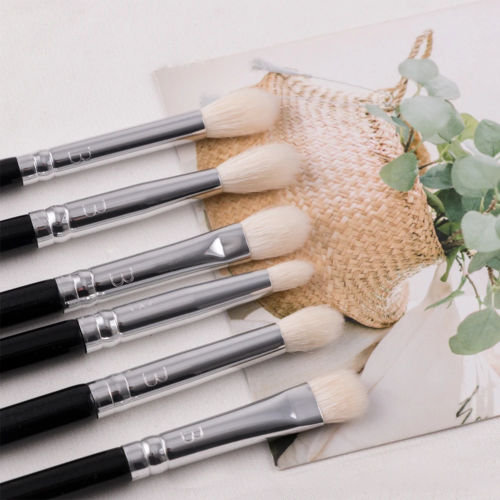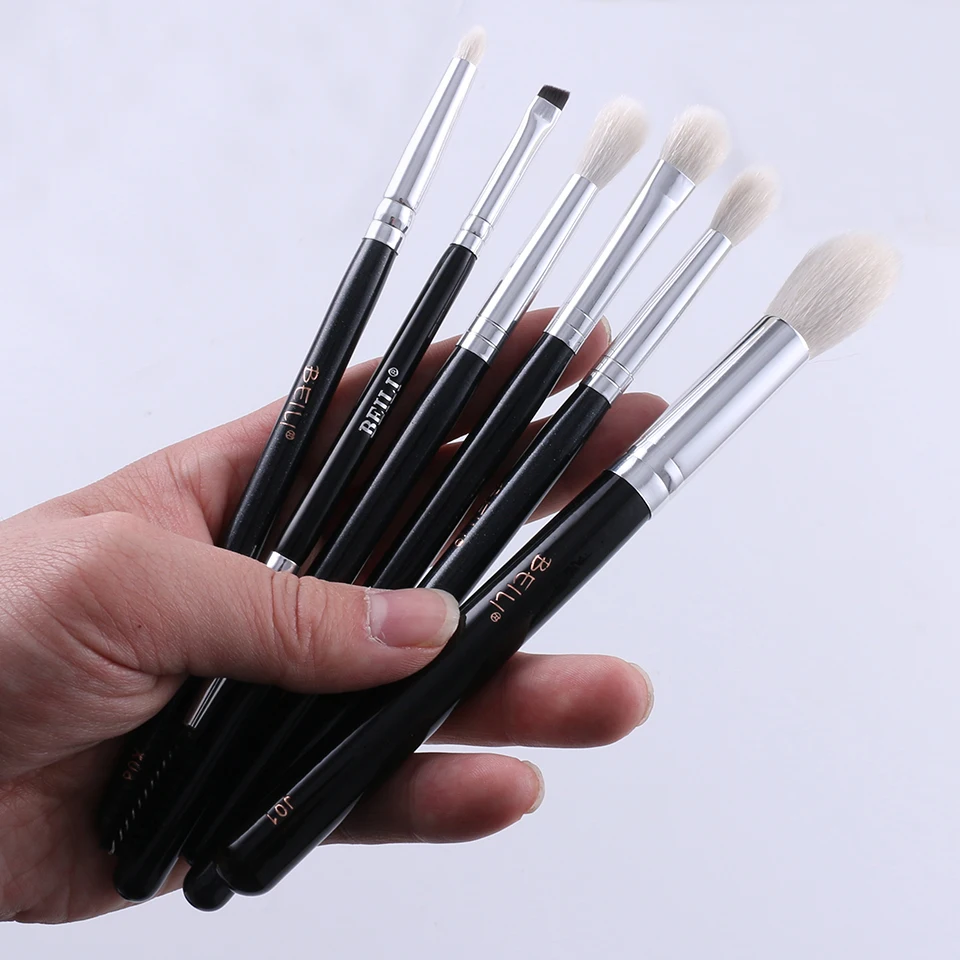 Кисти, особенно белые, 6 штук, сделаны из натуральной щетины Top, точная форма гарантирует идеальный макияж глаз. Осталось две щетки из синтетических волос