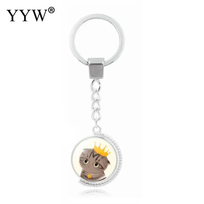Сумка кошелек брелоки, личность, цинковый сплав, со стеклом, плоским круглым, цвет серебряный, позолоченный rotatable & time украшения драгоценностей и разные дизайны для выбора и двухсторонняя & наклейка, свинец и кадмий, 100 мм, Внутренний диаметр: около 30 мм, продается нитями