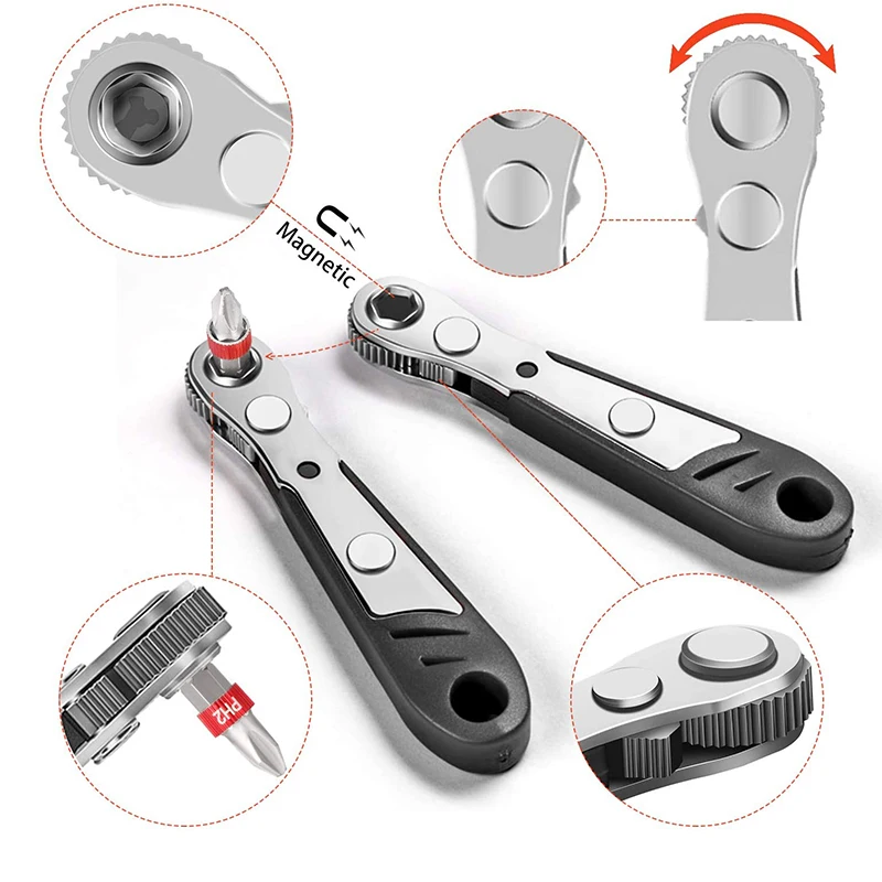1. Эти micro bit ratchets изготовлены из стали S2, их Спецификация отмечена на одной стороне, различные цвета могут помочь вам выбрать удобно, безопасный магнитный держатель гарантирует, что ваш бит не будет падать.