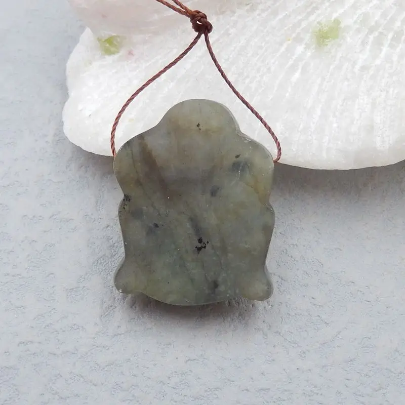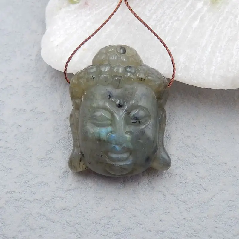 Горячая Распродажа, сверкающий Лабрадорит из натурального камня, резная фигурка в виде головы Будды, просверленное ожерелье, кулон из бисера 31x24x11 мм, 14 г
