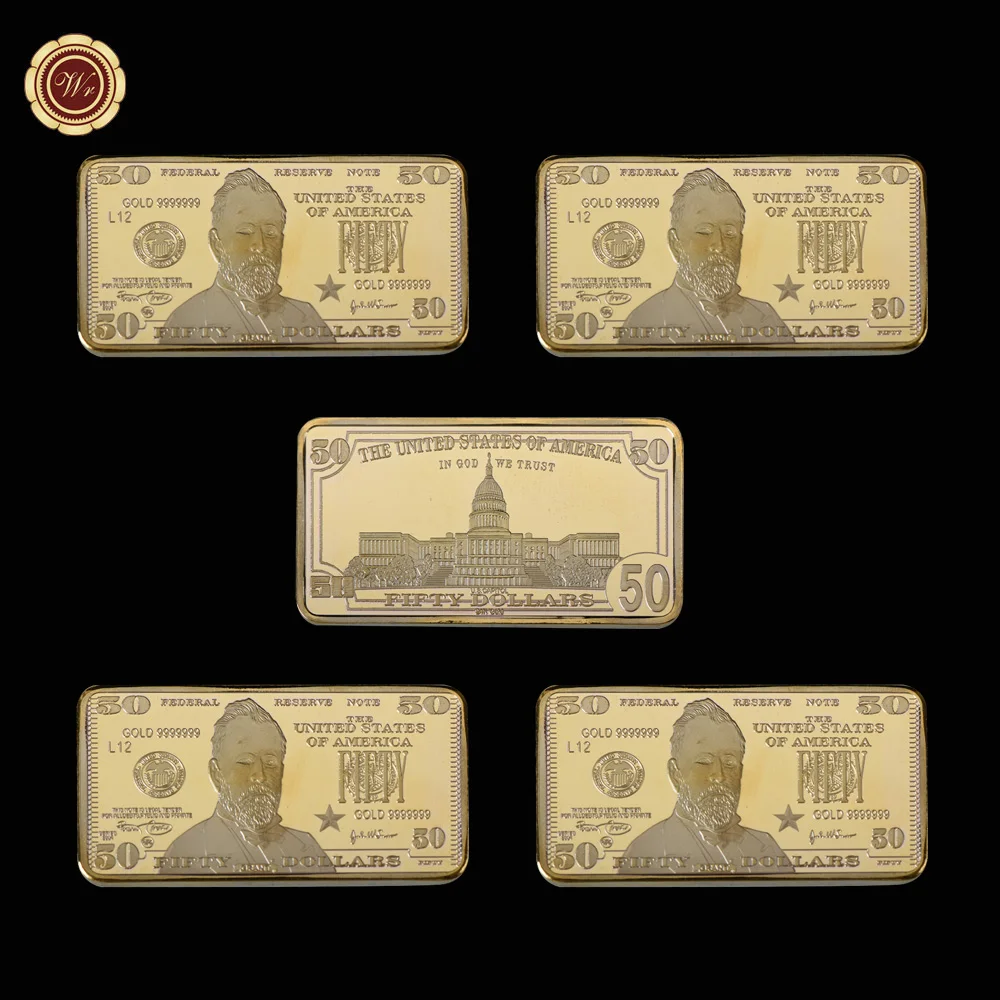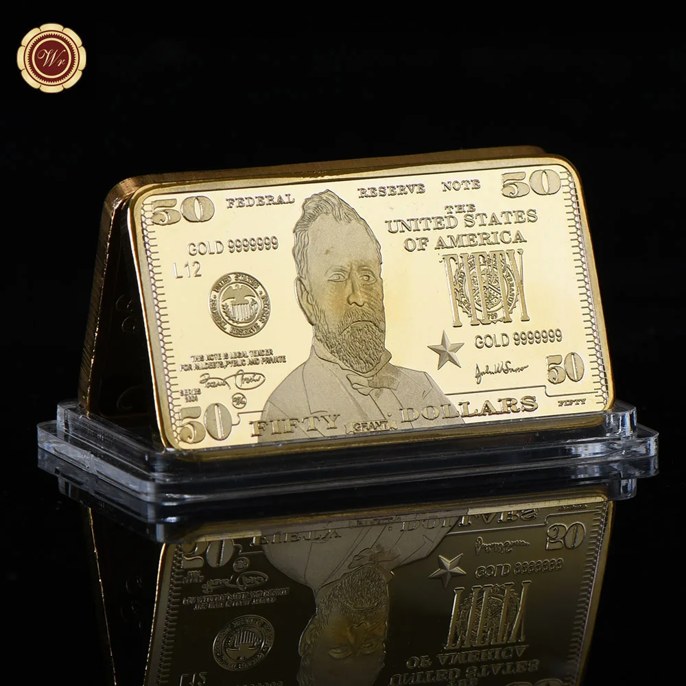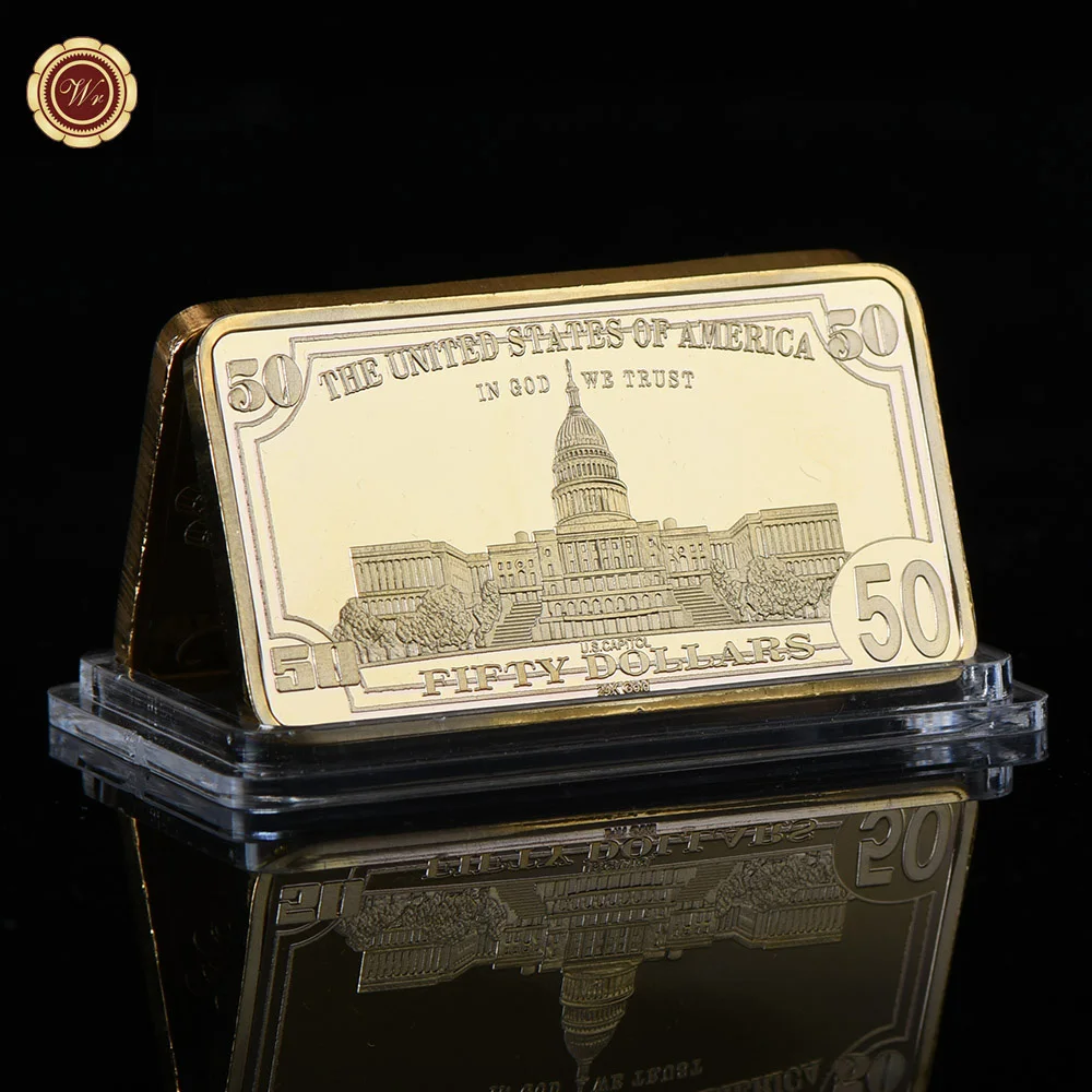 WR 24 k 999,9 чистый позолоченный Золотой Бар Декоративная американская 50 долларовая Золотая банкнота поддельные брусья Металлические ремесла ценностная коллекция