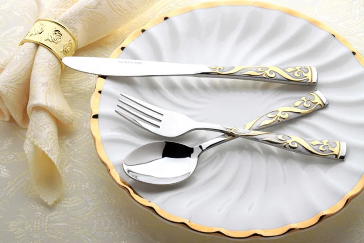 Бесплатная доставка 4 шт. набор столовых приборов из нержавеющей стали, Набор радужных столовых приборов, нож для стейка, вилка, набор посуды для западной еды, набор посуды
