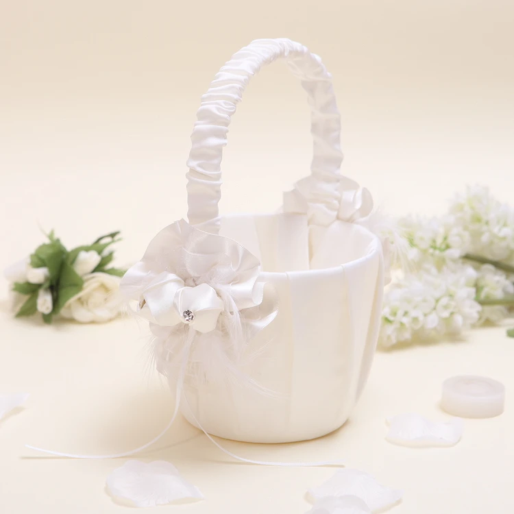 25 см белая свадебная Цветочная корзина атласные лепестки Свадебная церемония