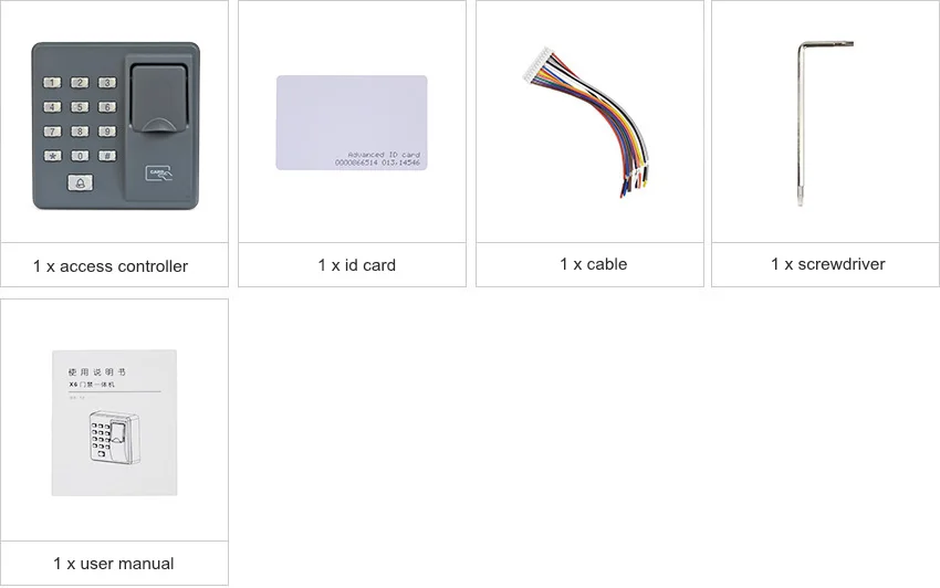 As a terminal designed for users who have common access control requirement, it works standalone and have the interface for third party electric lock, exit button, door sensor, alarm and bell.Keypad operation on the device is easy and convenient, such as enroll user, delete user and access control parameter settings etc.