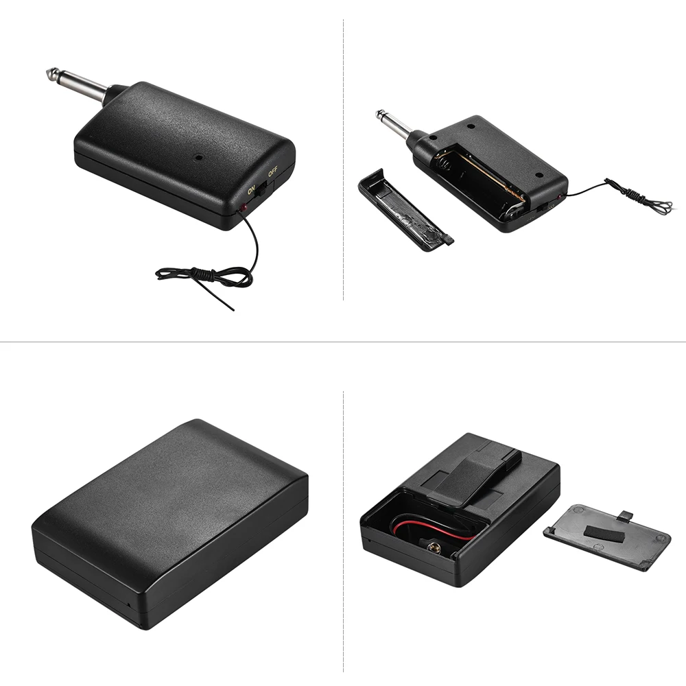 Микрофонный кабель длиной до 100 см/39in, передатчик с регулятором громкости и светодиодный индикатор, 6,35 мм разъем беспроводного приемника.