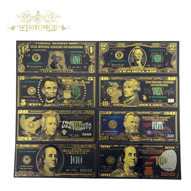 Название:Лучшая цена за полный набор 8 шт США $1-100 долларовая Золотая банкнота красочные мировые деньги на сувениры, золотые банкноты Прямая поставка