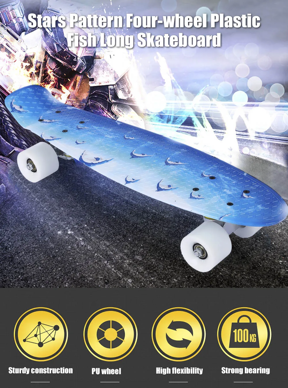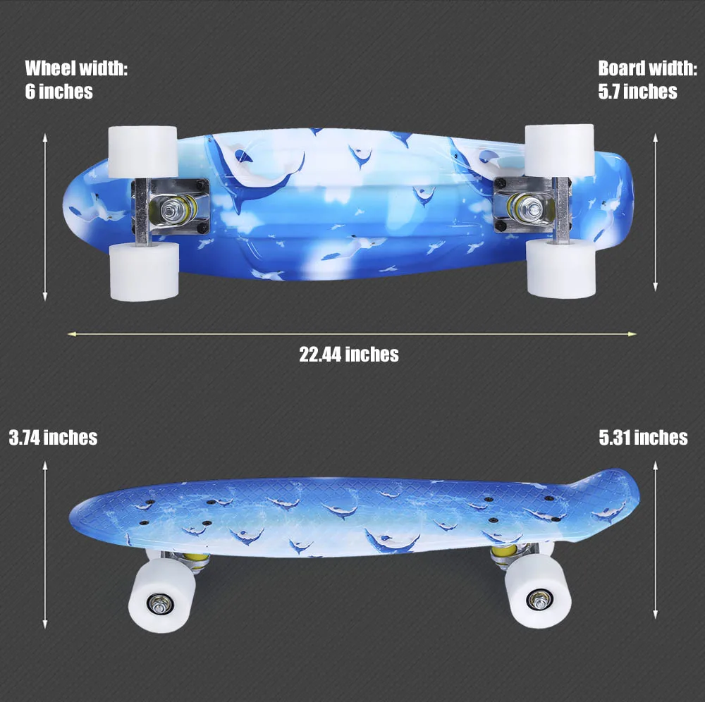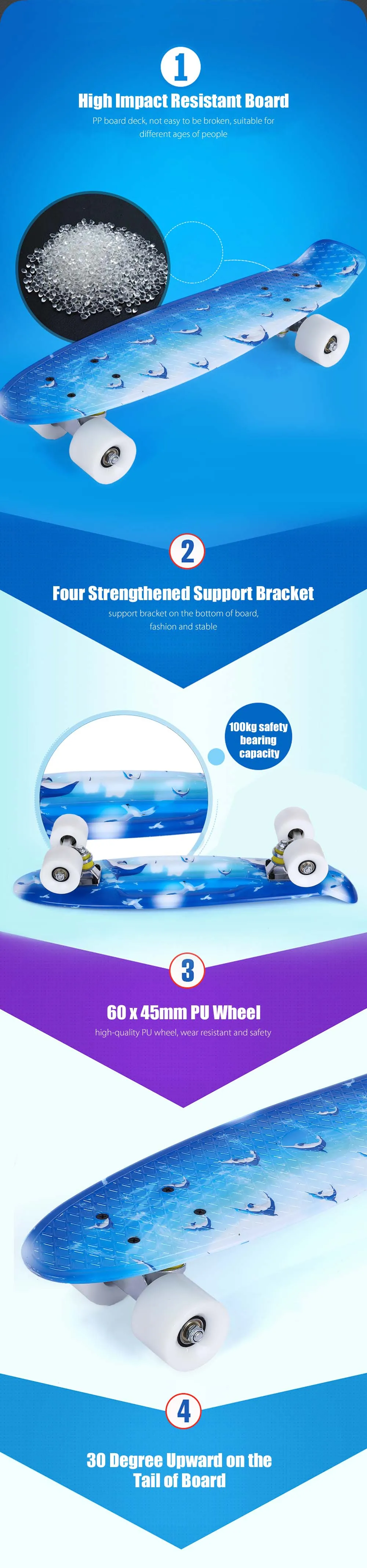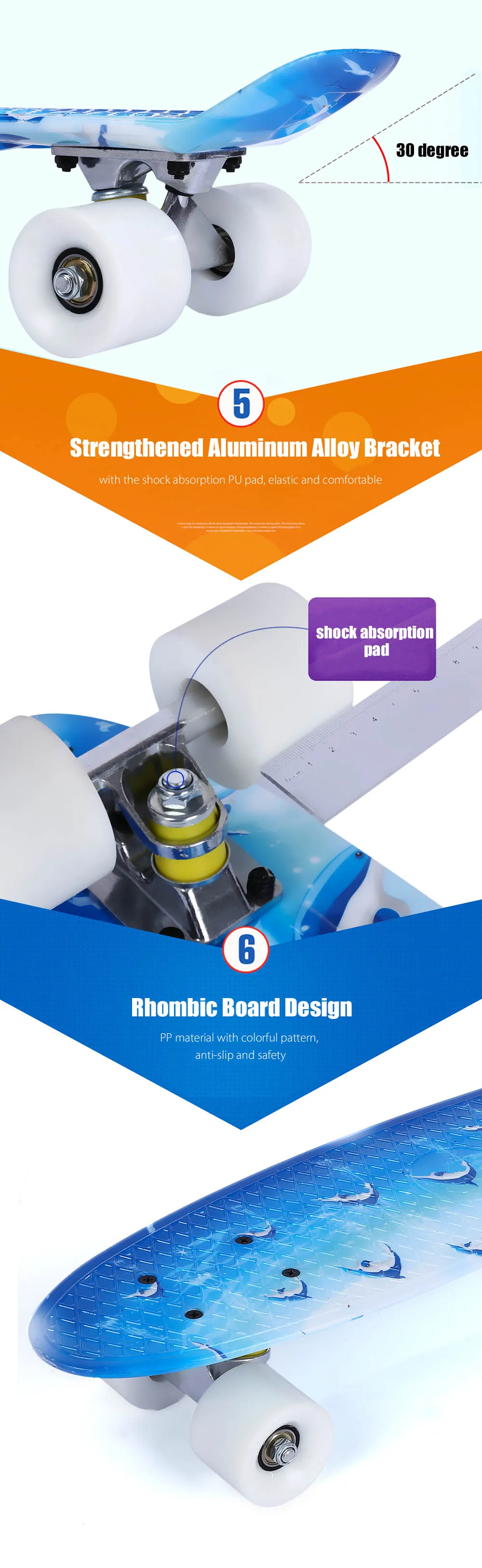 22-дюймовый скейтборд с изображением дельфина, длинная доска из ПУ, четырехколесный подшипник, 100кг, уличная пластиковая доска для катания на коньках для детей и взрослых