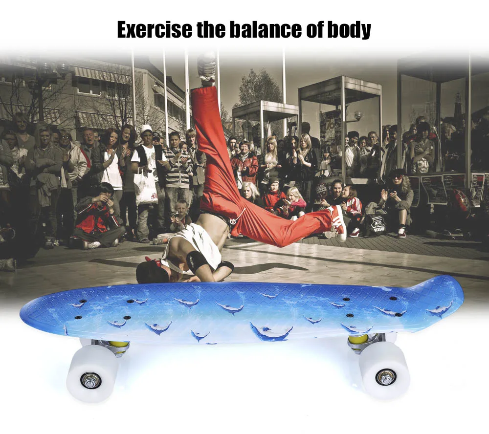Дельфин скейтборд с узором с четырьмя колесами, крутой и модный, прекрасный инструмент для развлечений на открытом воздухе.