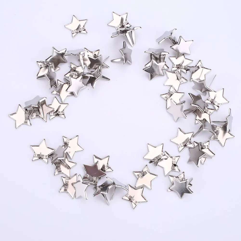 50 шт., пятиконечная звезда, металлические гвозди Brads, заклепки, застежка, украшение, подарок, пятиконечная звезда, ноги, украшенные гвоздями, Прямая поставка