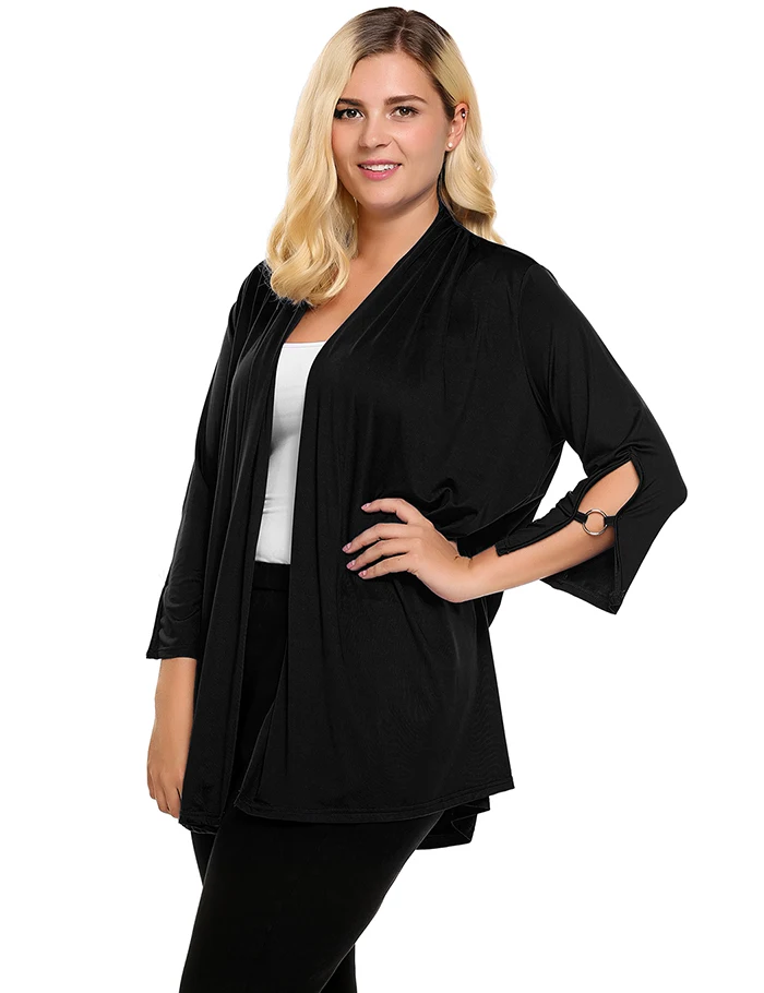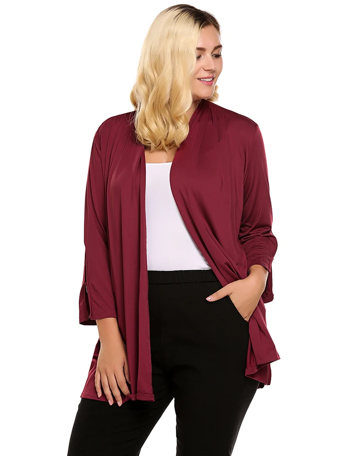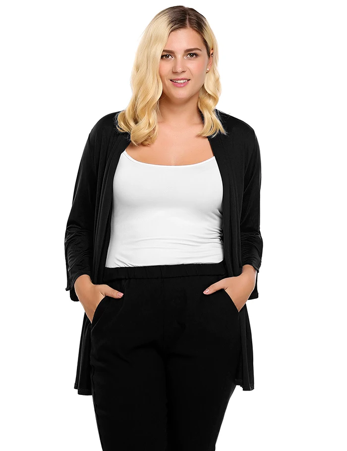 [Стиль]: женский кардиган IN'VOLAND; Сезон осень; Большие размеры; Рукав 3/4; Втулка; Однотонный; Открытый спереди; Свободные женские кардиганы; Большие размеры; 5XL