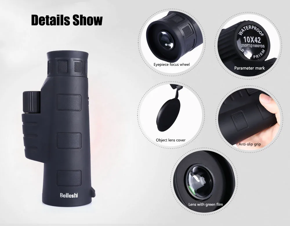 Beileshi 10x42 Открытый путешествия Монокуляр пылезащитный охотничий телескоп с оптическим объективом HD монокуляр для просмотра охоты