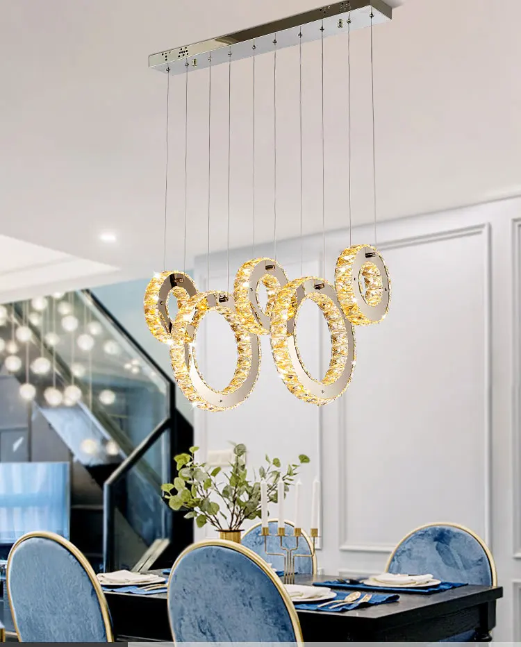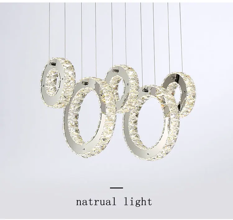 Современная хрустальная люстра, светодиодный светильник, светильники, 5 колец, светодиодная лампа, Кристальный обеденный подвесной светильник